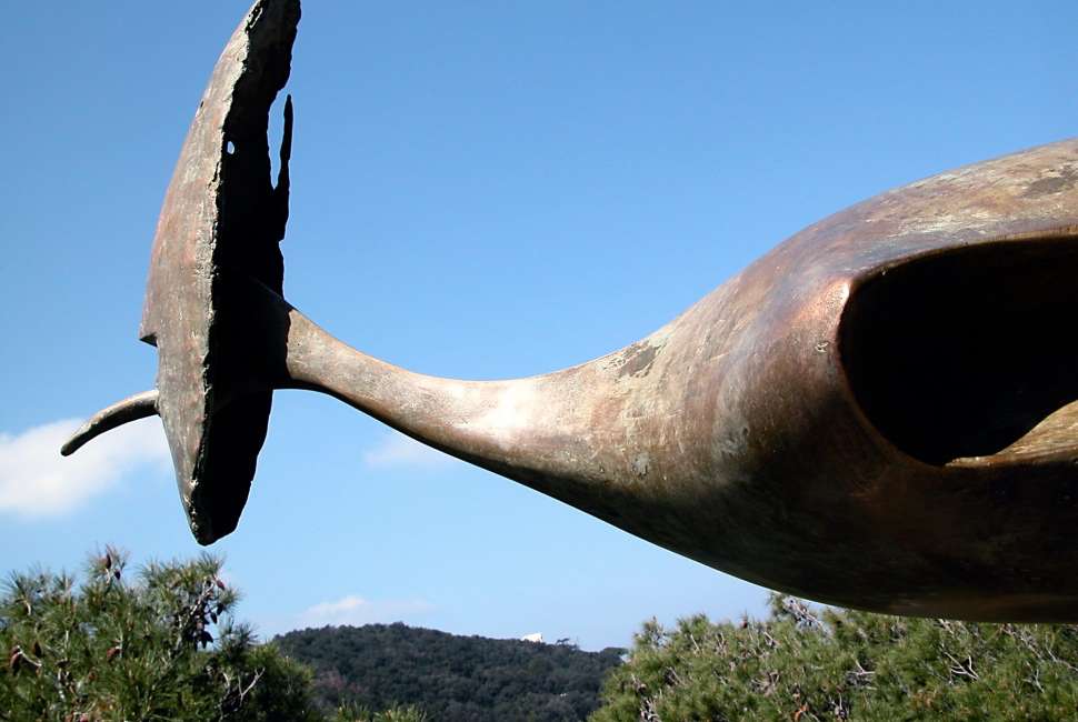 Figura solo accennata, pura forma nonostante le sue dimensioni(4metri e dieci di apertura d’ali, in bronzo), è occhio chiaroveggente che si libra fuori dal tempo e dallo spazio come gli uomini volanti di Goia che hanno lo sguardo fisso verso Utopia.